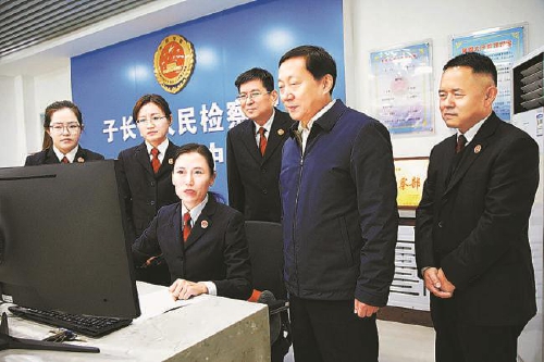 十月二十七日,陕西省检察院党组书记、检察长王旭光(右二)赴子长市检察院调研。